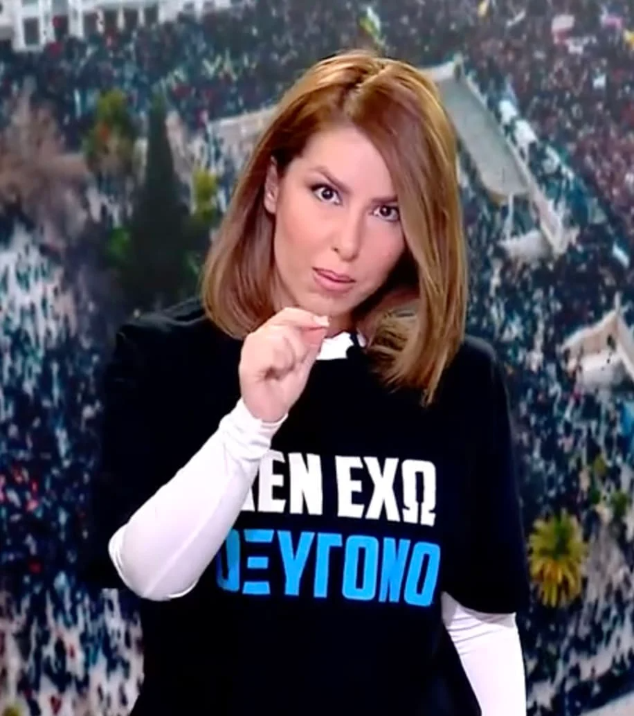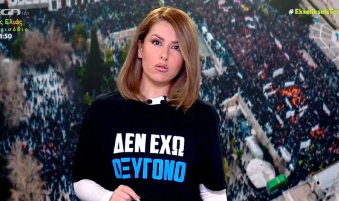 Συγκεκριμένα, με αφορμή τη χθεσινή μαζική συγκέντρωση ολόκληρης της Ελλάδας, όπου έγραψε ιστορία με τον εκατομμύρια κόσμο να βγαίνει στους δρόμους, ζητώντας δικαιοσύνη από τη Κυβέρνηση, εμφανίστηκε με μπλουζάκι “Δεν έχω οξυγόνο” στη σημερινή της εκπομπή.