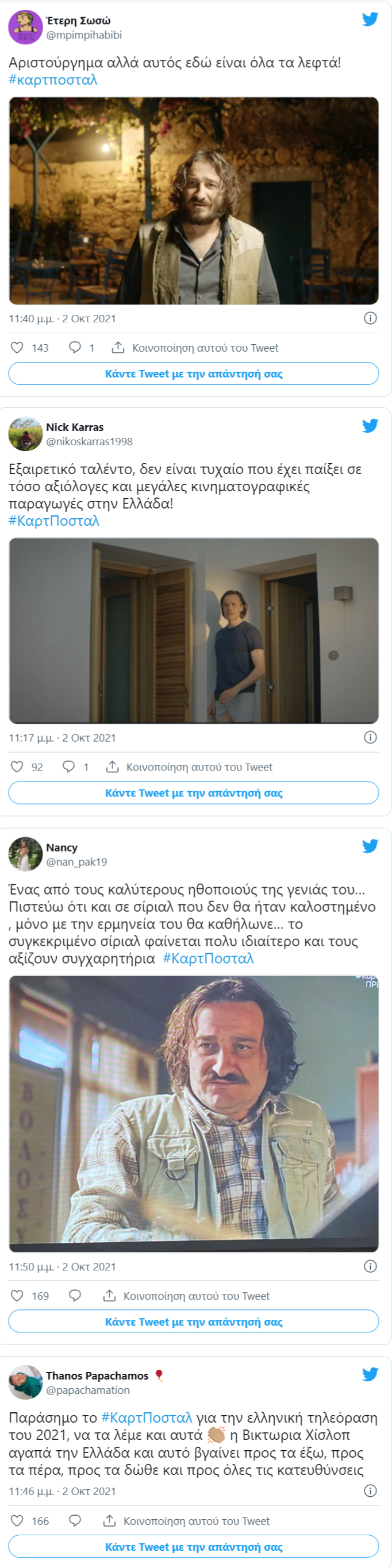 Ο Βασίλης Χαραλαμπόπουλος στα καλύτερα του! Καθηλωτική ερμηνεία. #ΚαρτΠοσταλ pic.twitter.com/62MvvkdceQ