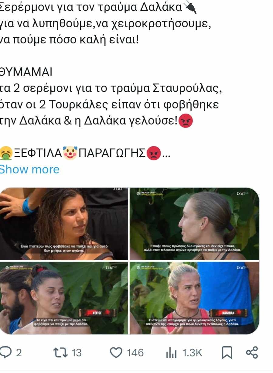 Παραμένει απορίας άξιο πώς ένας τόσο μικρός τραυματισμός προκάλεσε τόσα πολλά δάκρυα στην πρώην νικήτρια του Survivor, η οποία έχει ήδη διακριθεί στο παιχνίδι. Ακόμη και ο Γιώργος Γκιουλέκας, που αγωνιζόταν με τον Φάνη για τον πόντο, δεν αντιλήφθηκε τη σοβαρότητα του τραυματισμού της Δαλάκα.