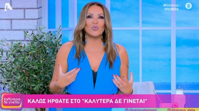 Η Ναταλία Γερμανού έκανε πρεμιέρα στον Alpha με την εκπομπή «Καλύτερα δε γίνεται», σήμερα, Σάββατο, το μεσημέρι και πέταξε το “καρφί” της για την Εβελίνα Νικόλιζα, με αφορμή τις αλλαγές στο πάνελ της Κατερίνας Καινούργιου.