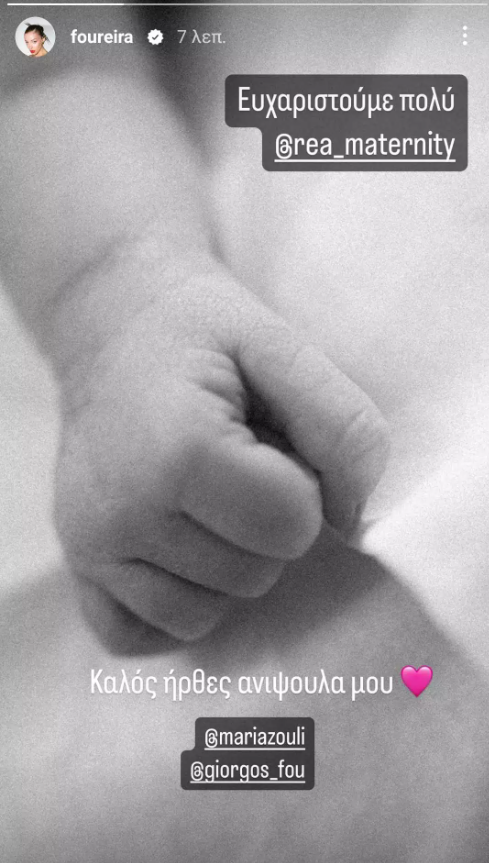 «Καλώς ήρθες ανιψούλα μου» έγραψε η Ελένη Φουρέιρα, αναρτώντας ένα στιγμιότυπο στο οποίο φαίνεται το χεράκι του βρέφους.