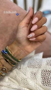 Η εγκυμονούσα δημοσίευσε μια φωτογραφία στην οποία έδειχνε τα καινούργια της νύχια, τα οποία ήταν baby ροζ και πάνω τους είχαν ένα ματάκι.