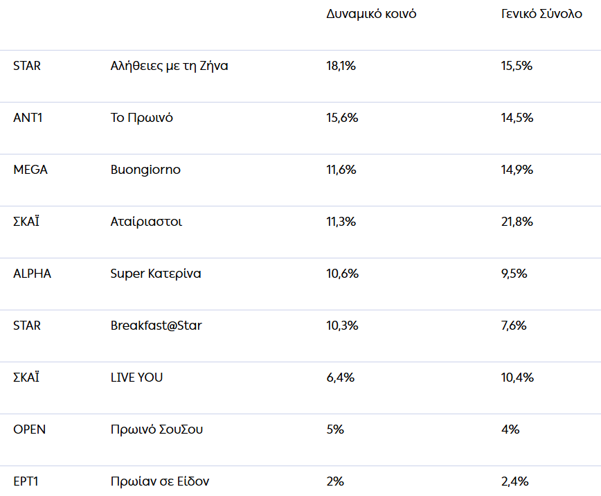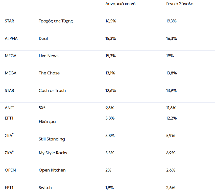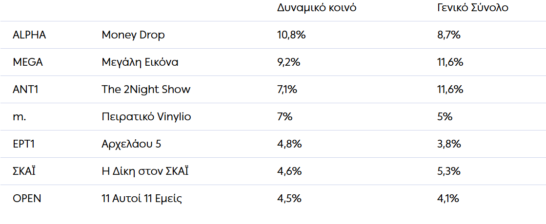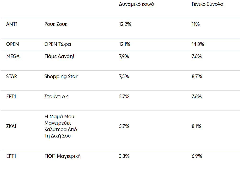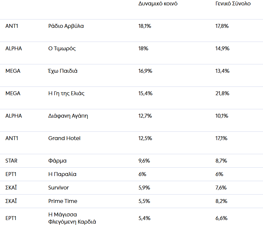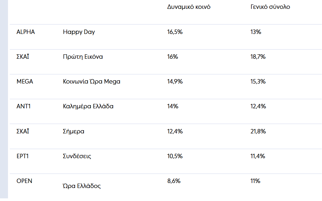 Αναλυτικά η τηλεθέαση για όλες τις ζώνες