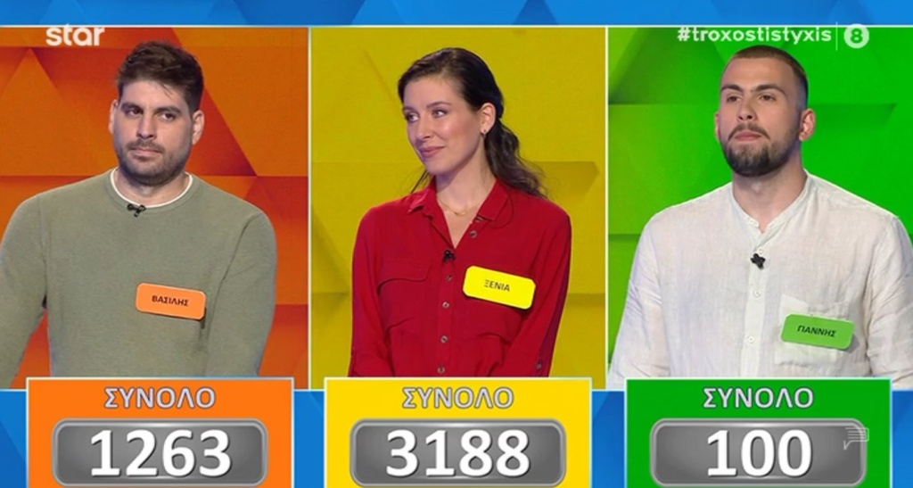 Γιατί όχι μόνο κέρδισε τους αντιπάλους της με το ποσό των 3.188 ευρώ αλλά όταν βρέθηκε στον τελικό, είπε αμέσως τις λέξεις του κουίζ στον πίνακα ενώ ήδη είχε επιλέξει από τον τροχό της τύχης το… αυτοκίνητο.