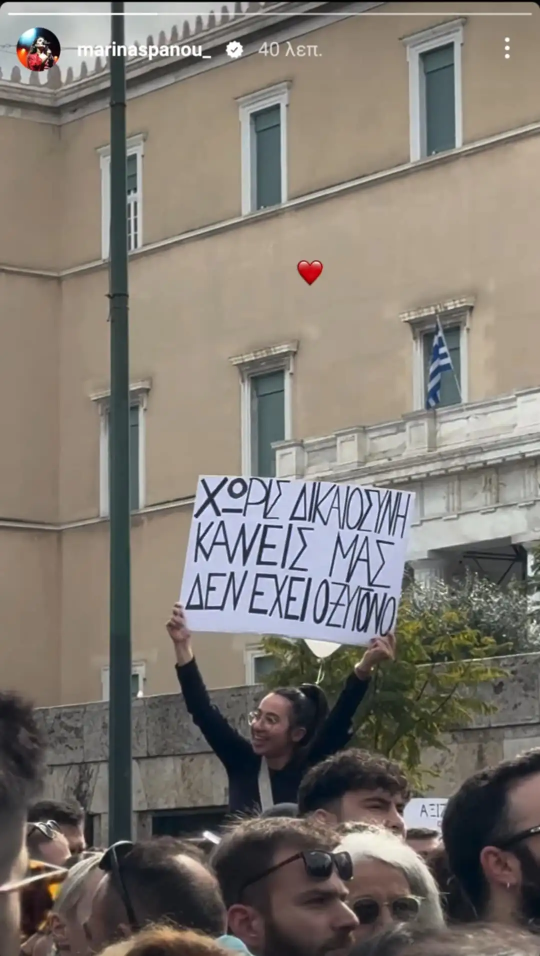 Λίγο αργότερα, έκανε μια δεύτερη ανάρτηση, συμπληρώνοντας περισσότερους στίχους του ίδιου τραγουδιού, ενισχύοντας το συμβολικό μήνυμα της συμμετοχής του στην πορεία.