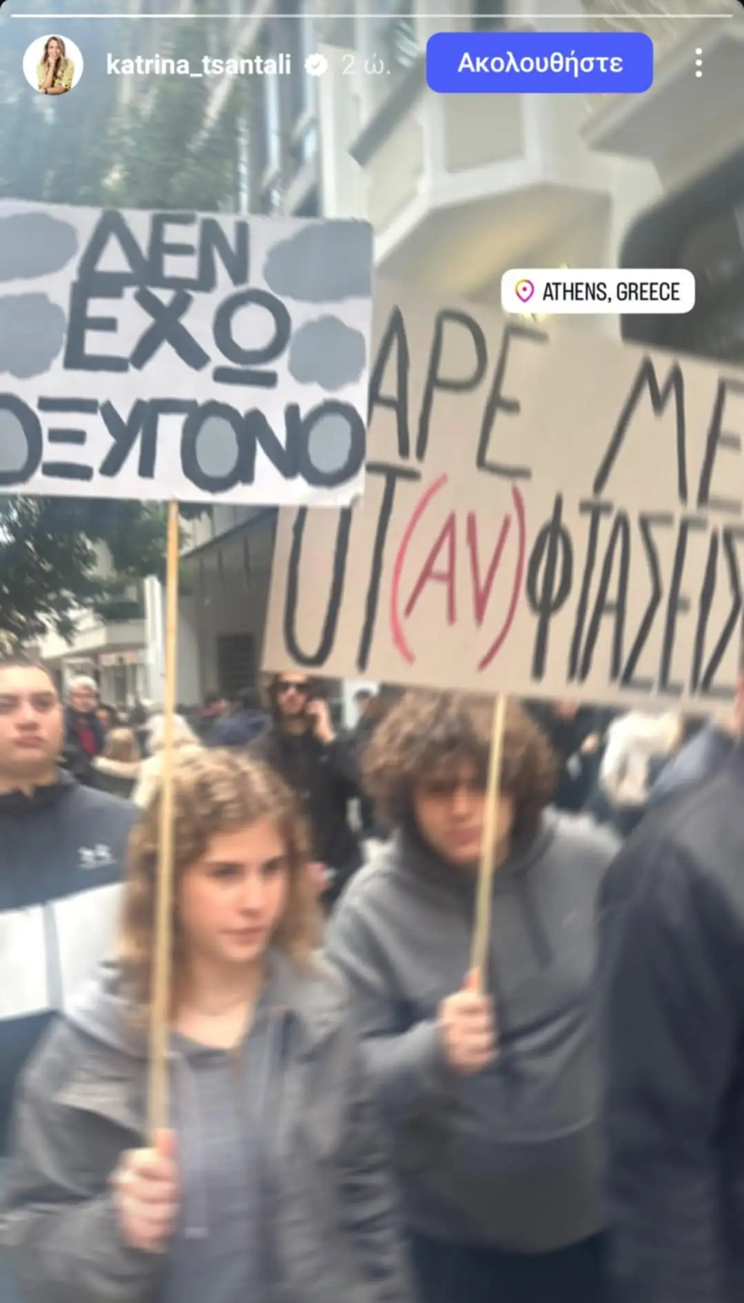 Μετά το τέλος της διαδήλωσης, ο Βασίλης Μπισμπίκης δημοσίευσε στο Instagram μια φωτογραφία του γιου του, συνοδεύοντάς την με τον στίχο από το εμβληματικό τραγούδι του Παύλου Σιδηρόπουλου, «Κάποτε θα ’ρθουν».
