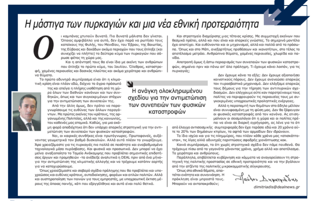 Διαβάστε το τελευταίο του άρθρο – που δημοσιεύθηκε στη DEAL news στις 25 Αυγούστου: