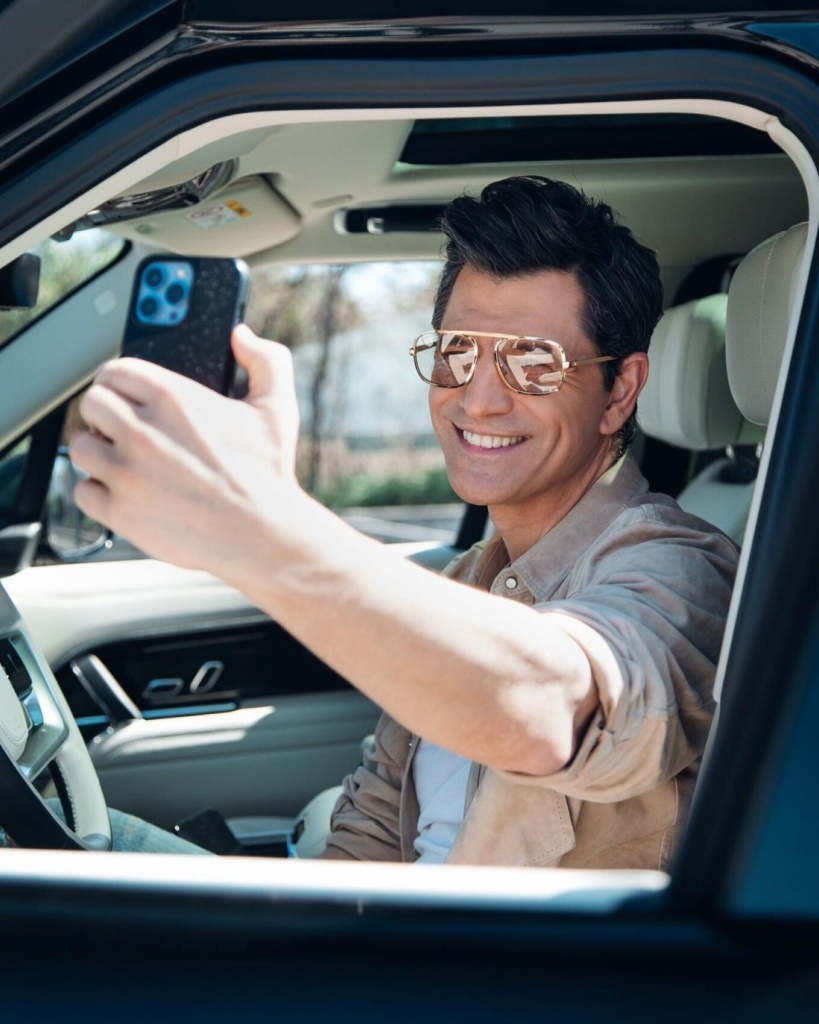 Στις υπόλοιπες εικόνες, ο Σάκης Ρουβάς ποζάρει μόνος του, μέσα από ένα αυτοκίνητο και καθισμένος σε μία καρέκλα.