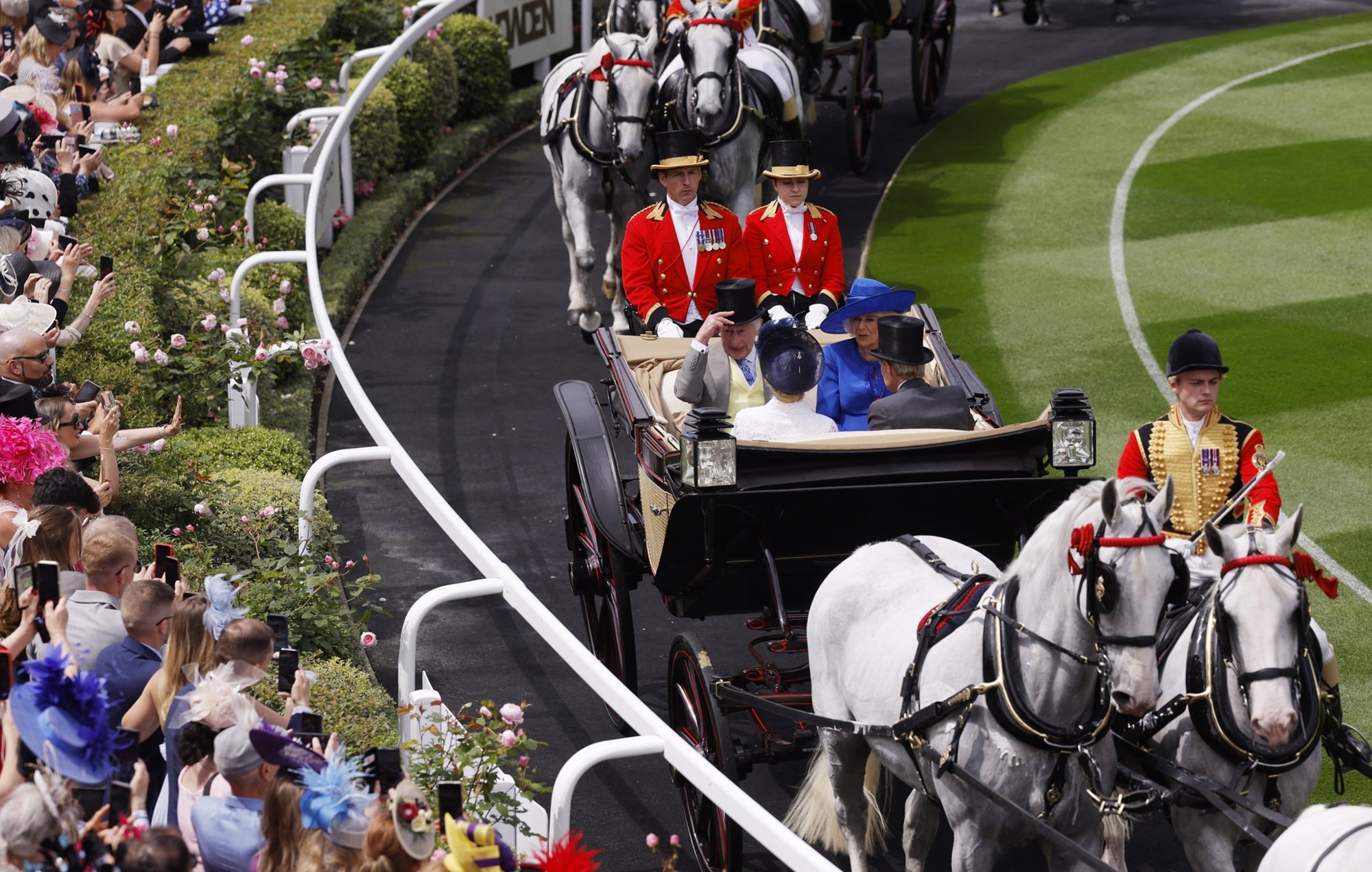 Ο βασιλιάς και η βασίλισσα ηγήθηκαν της βασιλικής πομπής, η οποία συνήθως σηματοδοτεί την έναρξη κάθε ημέρας ιπποδρομιών. Τέσσερα άμαξα με άλογα εισήλθαν στον ιππόδρομο ακριβώς στις 2 μ.μ. τοπική ώρα για να εκκινήσουν την εκδήλωση.