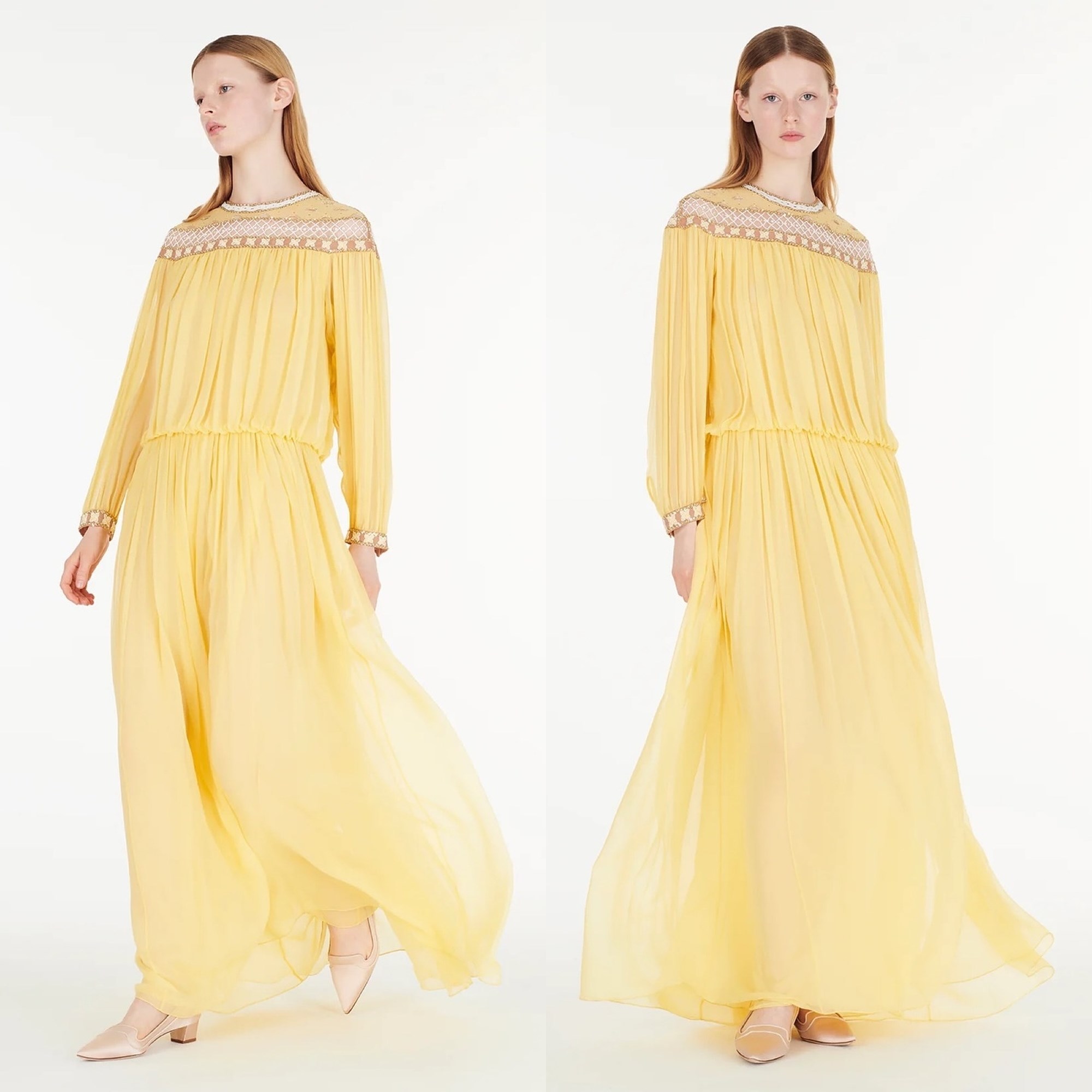 Ο Φίλιππος φορούσε σμόκιν και ψηλό καπέλο, ενώ η Νίνα Φλορ επέλεξε ένα κεντημένο φόρεμα από μεταξωτό σιφόν σε απαλό κίτρινο χρώμα, το οποίο ανήκει στο brand ADAM LIPPES και έχει κόστος 7,290 δολάρια.