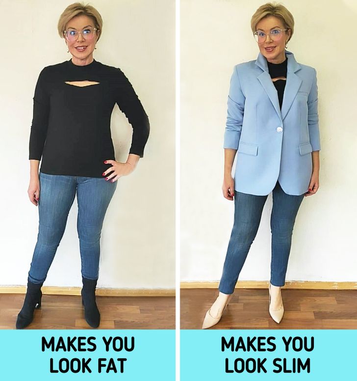 Πιθανότατα γνωρίζετε ότι οι μακριές ζακέτες και οι πολύ κοντές είναι αρκετά μοντέρνες στις μέρες μας. Στη φωτογραφία, μπορείτε να δείτε καλά πόσο άσχημα μια ζακέτα σε μήκος μέχρι το ισχίο ή μια ζακέτα που είναι λίγο χαμηλότερα από τους γοφούς. Κάνει τη γυναίκα να φαίνεται πιο κοντή, τους γοφούς της να φαίνονται φαρδύτεροι και τα πόδια της επίσης πιο κοντά.