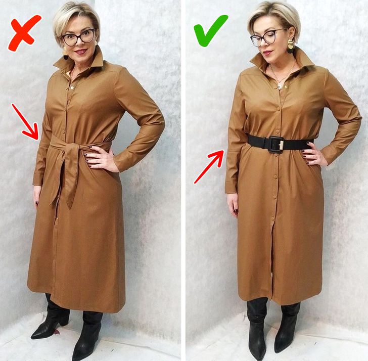- Το λουκ στα αριστερά είναι ιδανικό για εγκύους. Η εμφάνιση με τη ζώνη φαίνεται πιο ισορροπημένη.