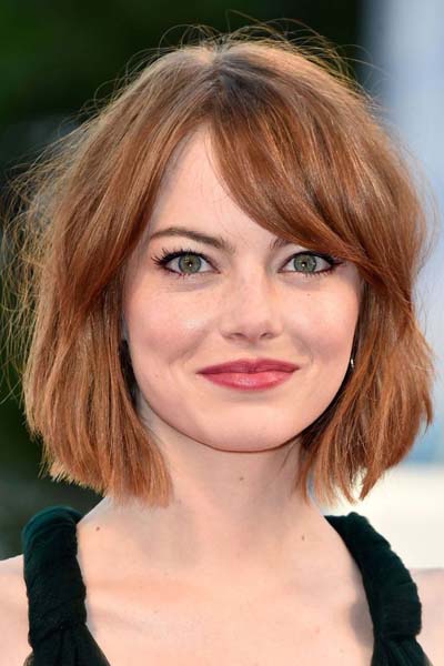 Αντίθετα, μια γυναίκα με στρογγυλό πρόσωπο συνίσταται να επιλέξει ένα φιλαριστό καρέ σε μήκος κάτω από το πηγούνι με μύτες ή ασύμμετρο κόψιμο και πλάγια χωρίστρα. Αν βέβαια θέλει να προσθέσει και μια φράντζα, ιδανική είναι η πλάγια.