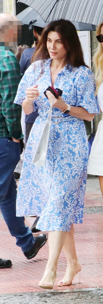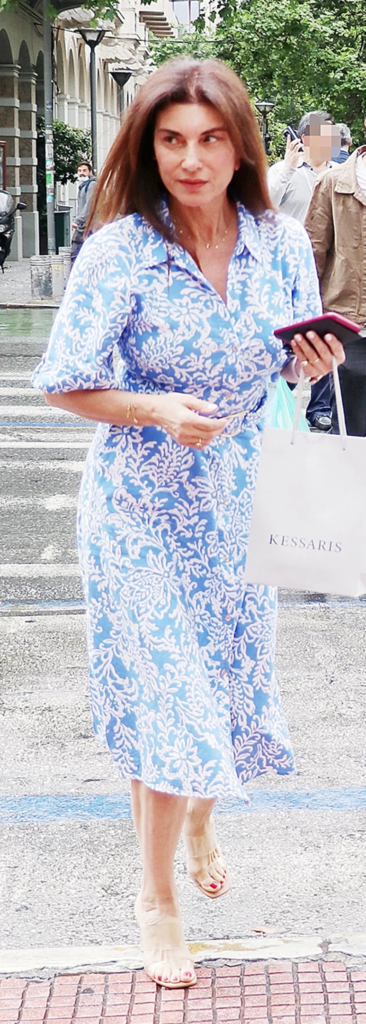 Συγκεκριμένα, η Ούρσουλα Νομικού φόρεσε ένα σεμιζιέ φλοράλ φόρεμα σε ανοιχτό μπλε και λευκό.