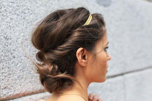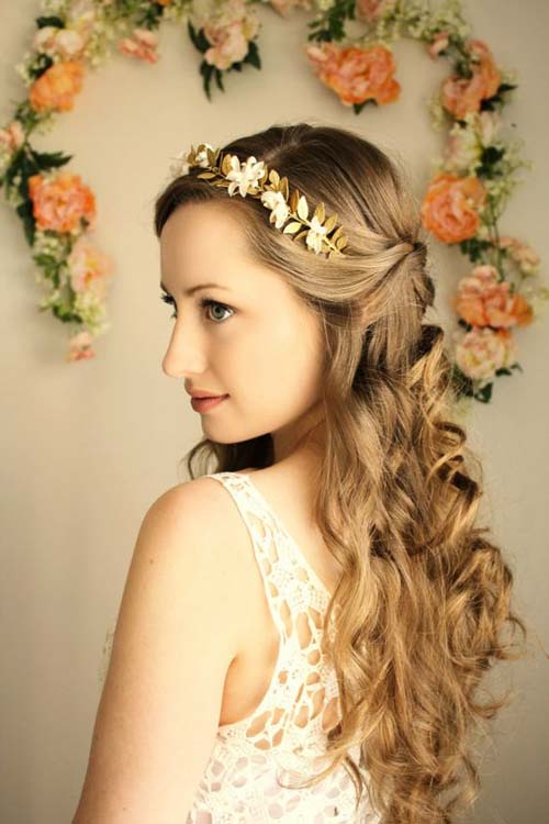 Τα συγκεκριμένα χτενίσματα μπορούν να αποδοθούν και με τα μαλλιά σας κάτω. Προσθέτοντας ένα στεφάνι ή με ένα headband – κορδέλα στο μέτωπο.