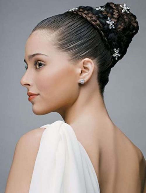 Αρχαιοελληνικοί κότσοι στολισμένοι με μικρές πλεξούδες και μπούκλες για να τους απογειώσετε, χρησιμοποιήστε διάφορα κοκαλάκια, στρας, μεταλλικές στέκες, μπαρέτες.