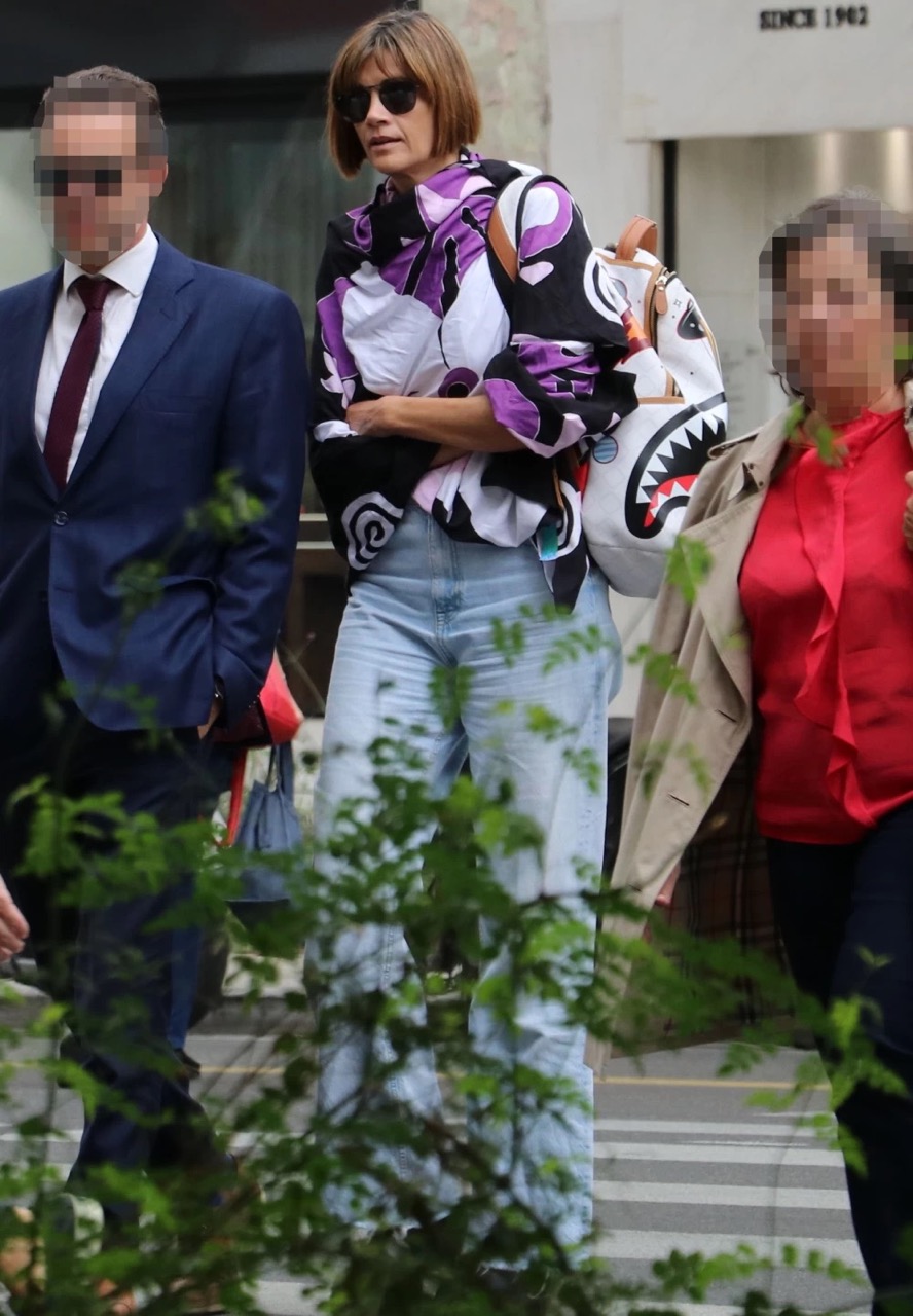 Η εμφάνιση της ηθοποιού ήταν εντυπωσιακή, επιλέγοντας μια μπλούζα με εμπριμέ σχέδια σε μοβ, μαύρους και λευκούς τόνους. Τη συνδύασε με φαρδύ τζιν σε light blue απόχρωση. Το φαρδύ τζιν, που αποτελεί μια από τις πιο hot τάσεις της σεζόν, αναδείκνυε το μοντέρνο στυλ και το fashion sense της.