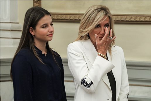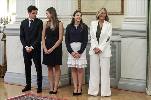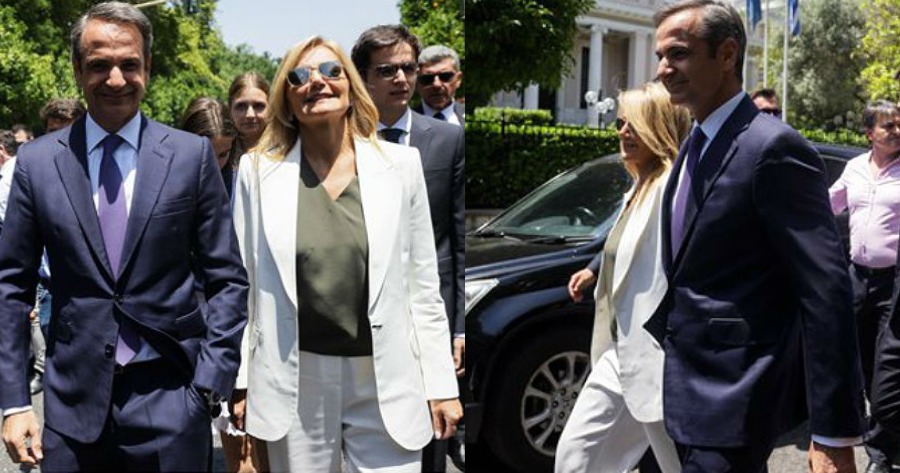 Η ίδια βρισκόταν στο πλάι του συζύγου της κατά την είσοδο τους στο Μέγαρο και καθ’ όλη την διάρκεια της τελετής «καμάρωνε» μαζί με τα παιδιά της τον νέο Πρωθυπουργό, ενώ δεν έλειψαν και οι στιγμές συγκίνησης.