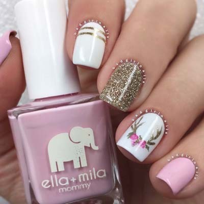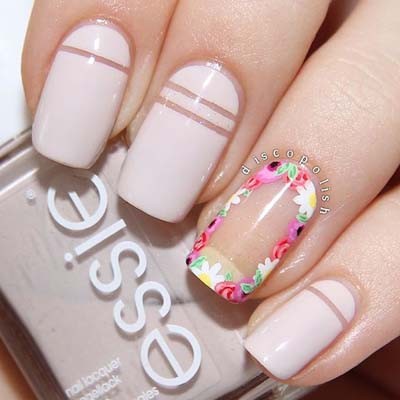 Τα floral nails και τα navy είναι μερικές από τις κορυφαίες για την εποχή προτάσεις σχεδίων με ροζ βερνίκι.