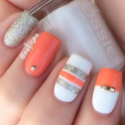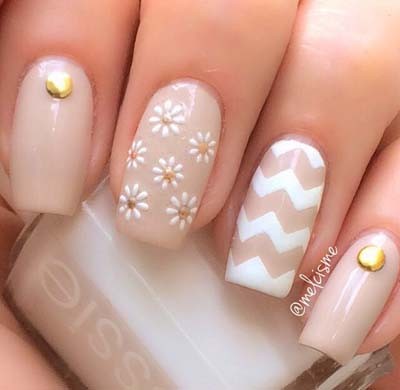 Τα γεωμετρικά σχέδια και τα λουλούδια είναι επίσης πολύ όμορφες προτάσεις για τα νύχια της Άνοιξης. Συνδυάζονται όμορφα με βερνίκια που έχουν γκλίτερ, αλλά και με μεταλλικά διακοσμητικά ή χρωματιστά στρας.