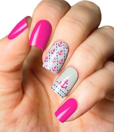 Επίσης ένα χρώμα που είναι κλασσικό και αγαπημένο σε όλες τις ηλικίες είναι το ροζ. Σε αποχρώσεις nude και πιο έντονες, το ροζ μπορεί να αποτελέσει τη βάση για μια μεγάλη επιλογή σχεδίων με λουλούδια, γραμμικά μοτίβα, αλλά και πιο περίτεχνα nail art σχήματα όπως οι άγκυρες.
