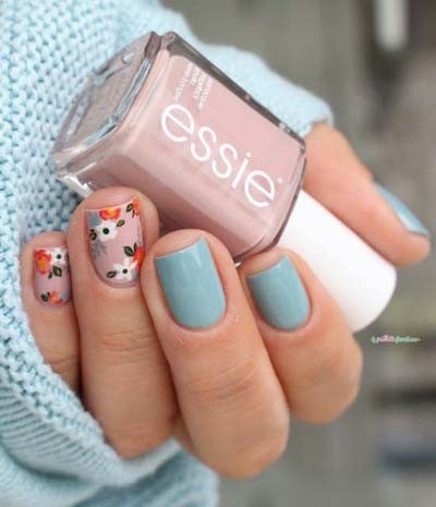 Όμορφος συνδυασμός χρωμάτων για τα ανοιξιάτικα νύχια είναι και το ροζ με το ανοιχτό γκρι. Μπορείτε να τα χρησιμοποιήσετε για να κάνετε ένα εντυπωσιακό ombre nails, είτε να βάψετε τα μισά νύχια ροζ και τα άλλα γκρι.