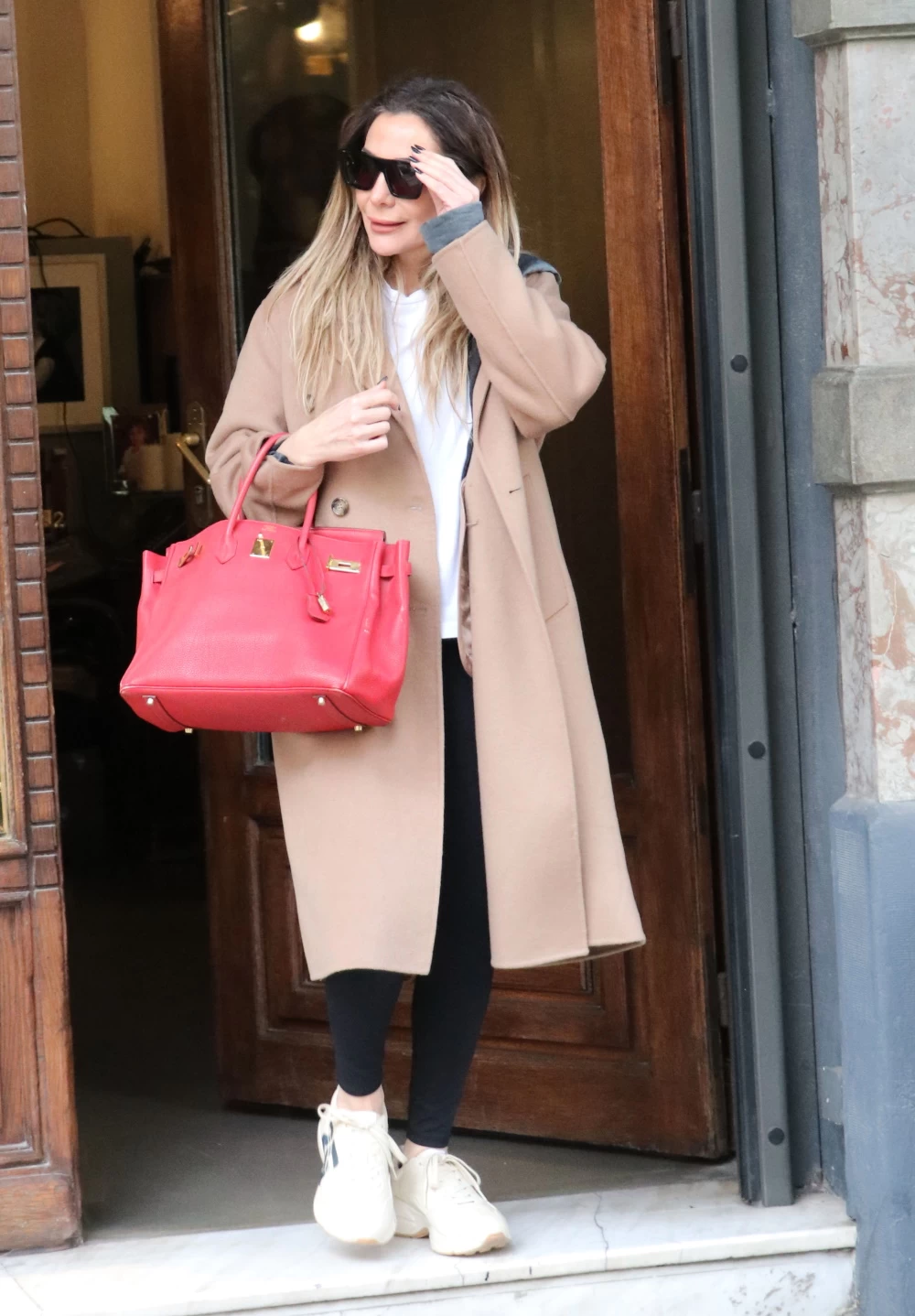 Ο φωτογραφικός φακός την απαθανατίζει στο κέντρο της Αθήνας ντυμένη sport casual αλλά well – put together. Επέλεξε για την βόλτα της στο κέντρο της πρωτεύουσας ένα μαύρο κολάν, ένα λευκό φούτερ με τζάκετ και αθλητικά chuncky sneakers. Την παράσταση όμως έκλεψαν το πανωφόρι της ένα κομψό, μάξι, σταυρωτό, καμηλό παλτό και η σπάνια designer τσάντα της.