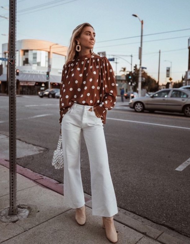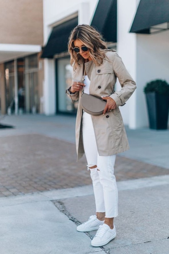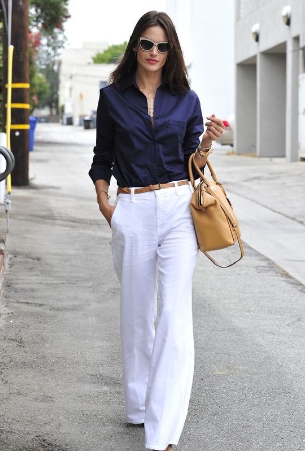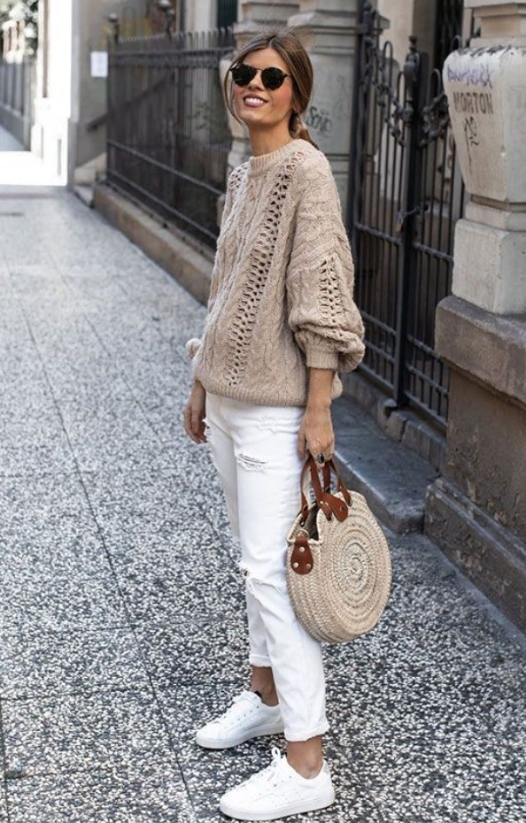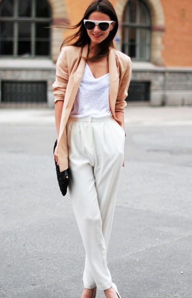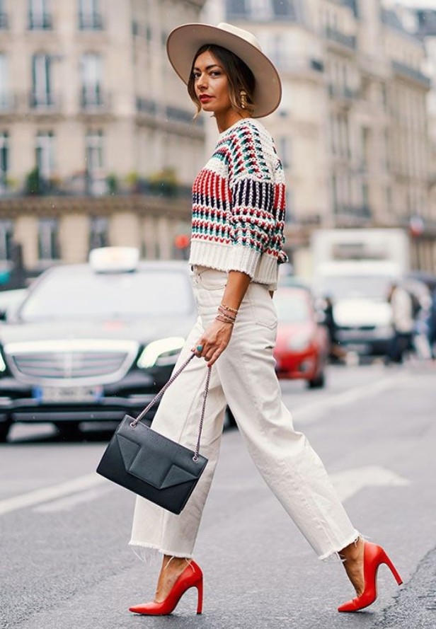 Το λευκό παντελόνι μπορεί να συνδυαστεί τόσο με αθλητικά παπούτσια για το πρωί, όσο και με ψηλά πέδιλα για το βράδυ.