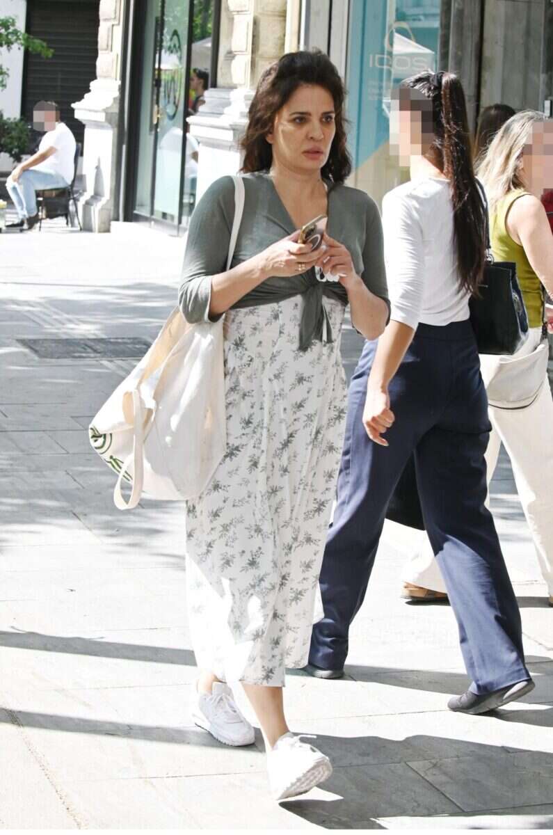 Η ηθοποιός επέλεξε να φορέσει πάνω από το φόρεμα ένα γκρι μπολερό, το οποίο αποτελούσε αγαπημένη στιλιστική συνήθεια του παρελθόντος, ταιριάζοντάς το άψογα με το casual look της.