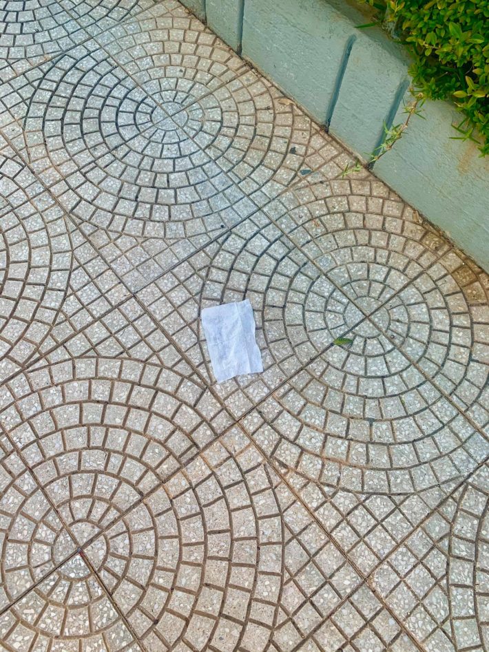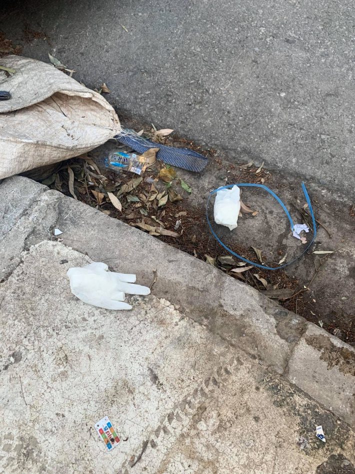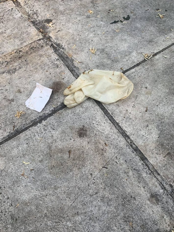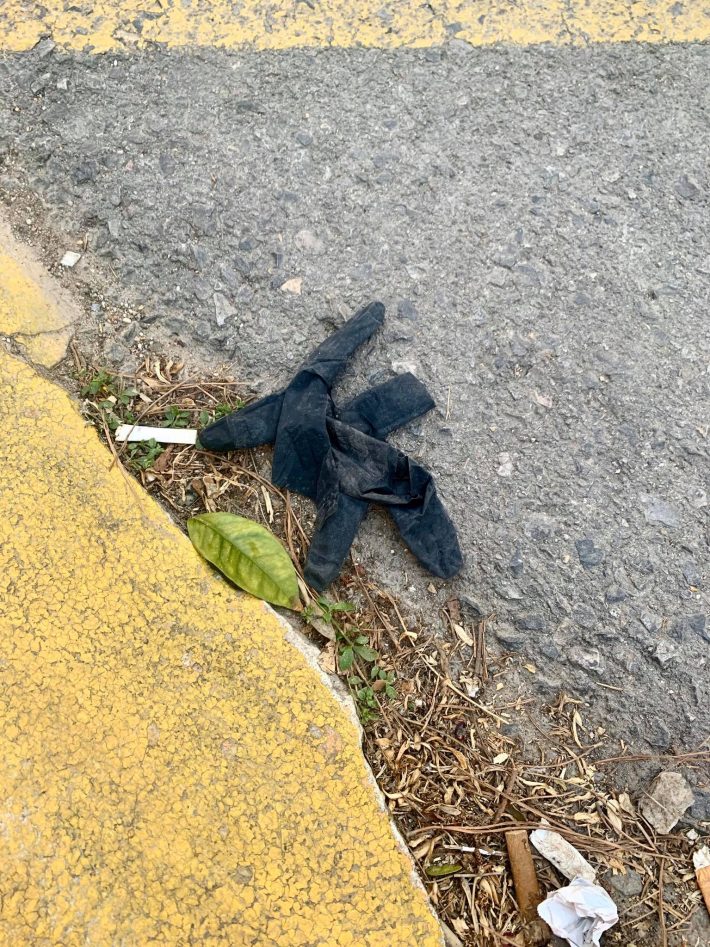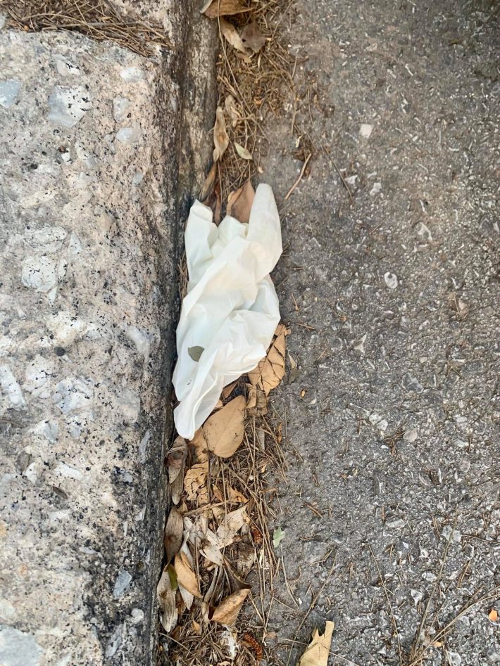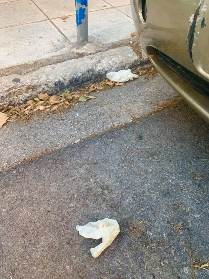 Σε κεντρικό δρόμο του Παλαιού Φαλήρου και επί της οδού Μουσών προκαλούν-δεδομένης της ύπαρξης του κορωνοϊού- αποτροπιασμό τα πεταμένα γάντια, αντισηπτικά μαντηλάκια, χαρτομάντηλα και πάσης φύσεως καθαριστικά, με τα οποία άπαντες έχουν εφοδιαστεί προκειμένου να «πολεμήσουν» τον Covid-19.