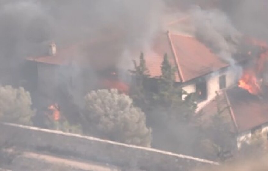 Όπως φαίνεται και σε βίντεο του ΣΚΑΪ, η φωτιά έφτασε σε σπίτια ορισμένων οικισμών.