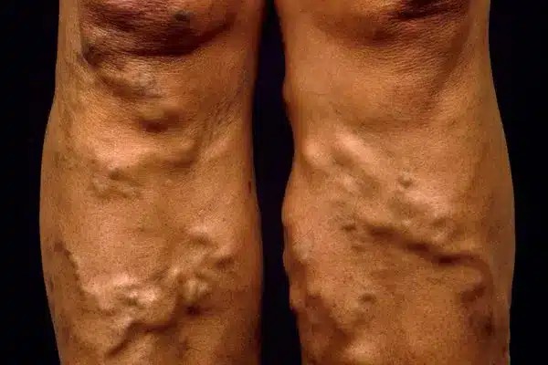 Σκούρες μπλε ή μοβ φλέβες που προεξέχουν ή είναι φουσκωμένες