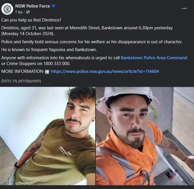 Έντονη ανησυχία τις τελευταίες ημέρες για την οικογένεια ενός 31χρονου Έλληνα, ο οποίος δεν είχε δώσει σημεία ζωής. Ένα μήνυμά του προκάλεσε συναγερμό, με αποτέλεσμα να εκδοθεί ανακοίνωση και από την αστυνομία για την αναζήτησή του.