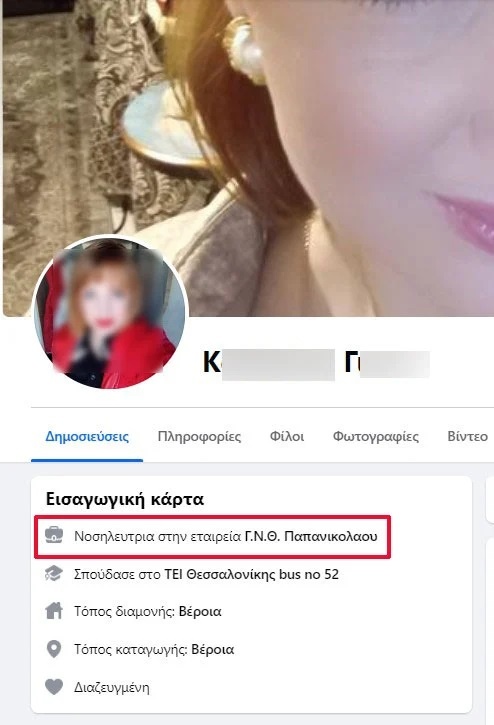 Σύμφωνα με πληροφορίες από την «Ζούγκλα», η γυναίκα με τα αρχικά Κ.Γ. ζούσε πριν από λίγο καιρό στη Θεσσαλονίκη αλλά πρόσφατα επέστρεψε στη Βέροια. Σύμφωνα με τον τοπικό ιστότοπο ειδήσεων Veriotis.gr, η παιδοκτόνος εργαζόταν στο Παπανικολάου και βρισκόταν επί του παρόντος σε άδεια ανατροφής τέκνου. Η ίδια έχει αναρτήσει στα Μέσα Κοινωνικής Δικτύωσης ότι εργάζεται σε αυτό το συγκεκριμένο Νοσηλευτικό Ίδρυμα.