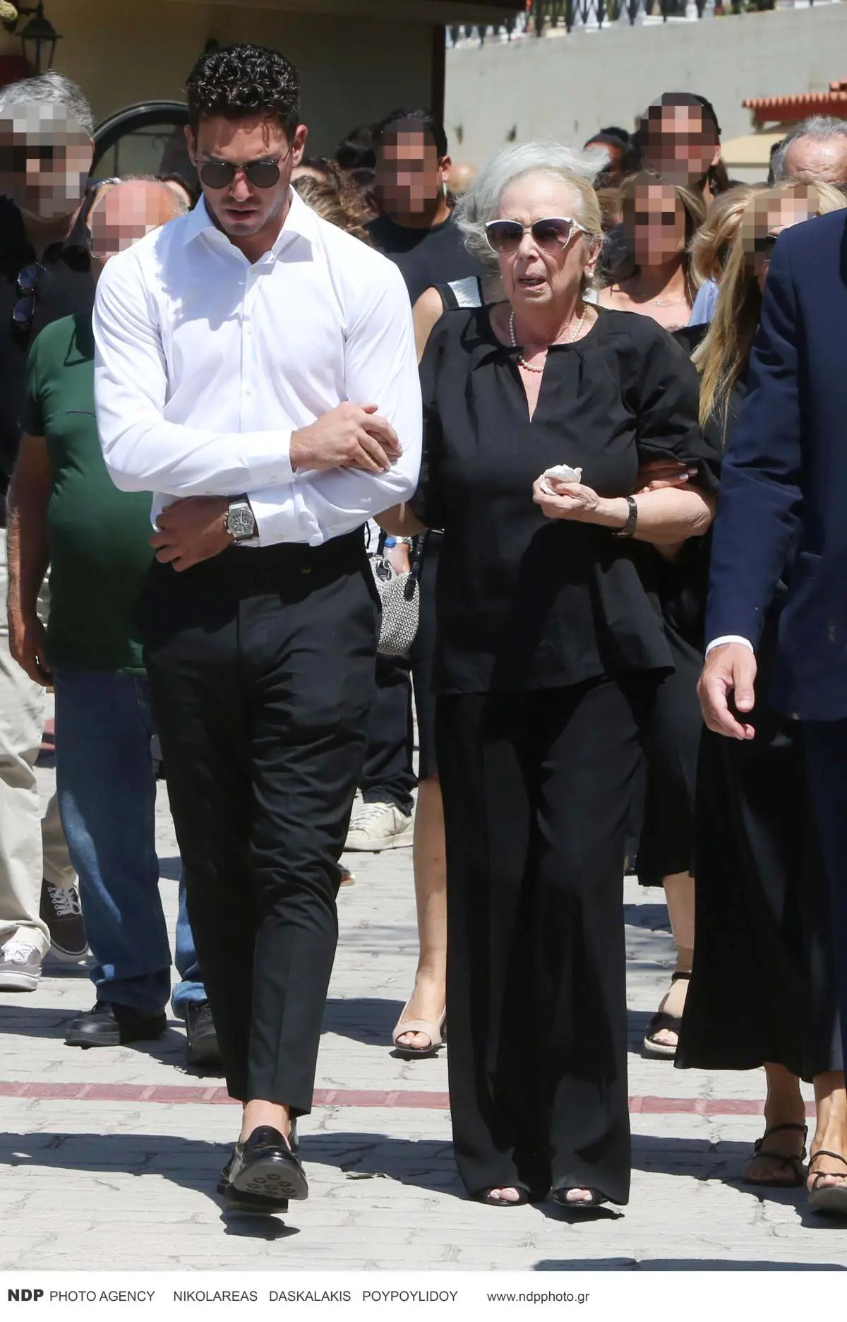 Τραγική φιγούρα και η μητέρα της, η οποία έφτασε στην εκκλησία συνοδευόμενη από τις κόρες της και τον εγγονό της, ο οποίος κρατούσε σφιχτά το χέρι της.