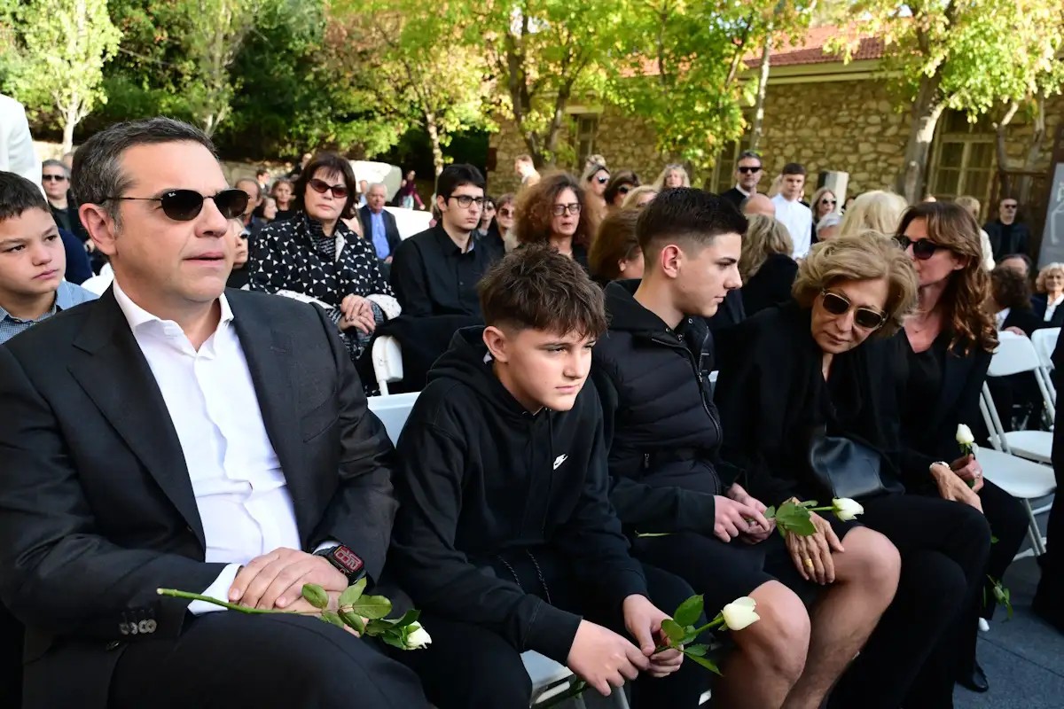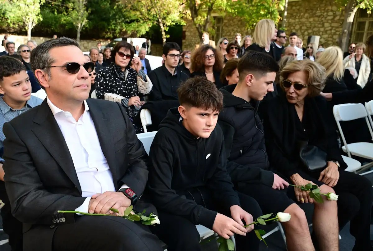 Ο πρώην πρωθυπουργός εμφανίστηκε, έχοντας στο πλευρό του τη σύντροφό του, Μπέττυ Μπαζιάνα και τους δυο γιους του, Παύλο και Ορφέα – Ερνέστο με τους οποίους ο Αλέκος Φλαμπουράρης είχε πολύ ισχυρό δέσιμο μέχρι να έρθει στη ζωή η εγγονή του (κόρη του γιου του Μιχάλη Φλαμπουράρη Ρετσίνα)