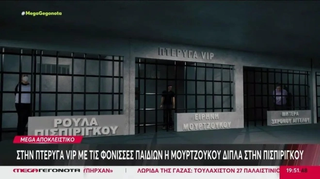Μετά την απολογία της ενώπιον της ανακρίτριας το πρωί της Κυριακής (13/7/25), η 25χρονη Μουρτζούκου κρίθηκε προσωρινά κρατούμενη. Οι σωφρονιστικές αρχές αποφάσισαν να την οδηγήσουν στην πτέρυγα ΣΤ’ των γυναικείων φυλακών Κορυδαλλού, γνωστή και ως “VIP”, που βρίσκεται στο ισόγειο, δίπλα από τον αναρρωτήριο.