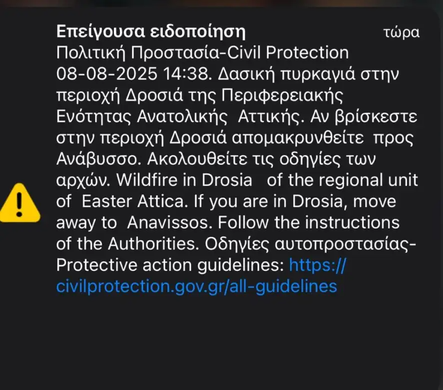 «Δασική πυρκαγιά στην περιοχή Δροσιά, απομακρυνθείτε προς Ανάβυσσο».