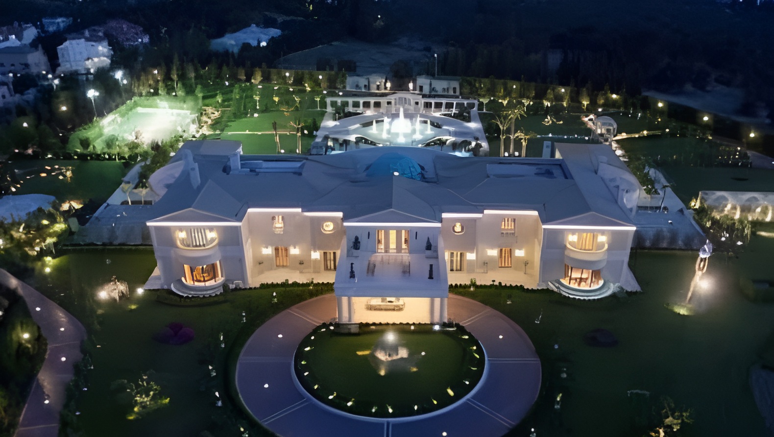 Αν και δεν υπάρχουν επίσημα στοιχεία για τα τετραγωνικά της κατοικίας, εκτιμάται ότι ξεπερνά τα 3.000 τ.μ. Οι εξωτερικοί χώροι παραπέμπουν σε βασιλικούς κήπους, θυμίζοντας τις Βερσαλλίες ή ακόμη και τους κήπους της Βαβυλώνας. Η πισίνα φτάνει τα 40 μέτρα σε μήκος, σχεδόν ολυμπιακών διαστάσεων.