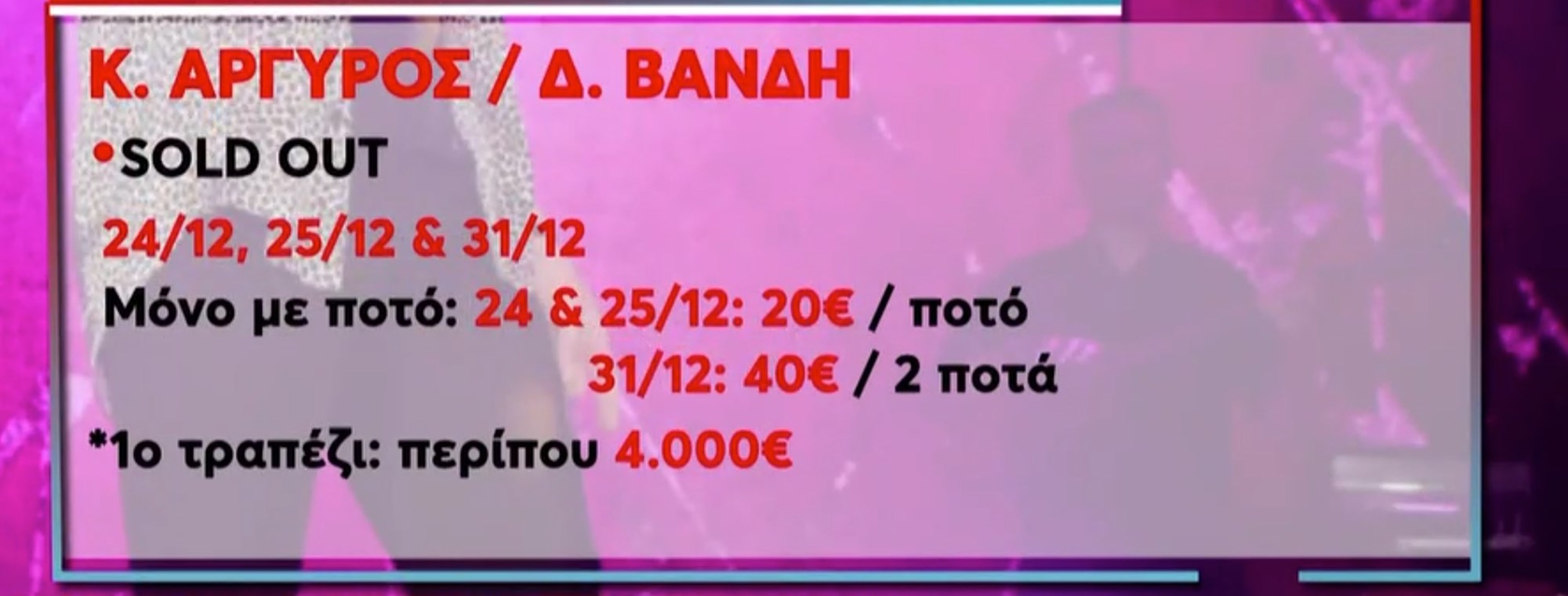 Απίστευτα ποσά για ρεβεγιόν στο πρώτο τραπέζι στα μπουζούκια Αθήνας και Θεσσαλονίκης για τις γιορτές Χριστουγέννων και Πρωτοχρονιάς