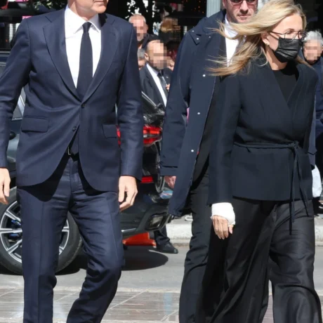Το ζεύγος απαθανατίστηκε κατά την άφιξή του στη Μητρόπολη Αθηνών για την κηδεία της Ελένης Γλύκατζη-Αρβελέρ, στη οποία η Μαρέβα Γκραμπόφσκι ήταν ιδιαίτερα δεμένη.