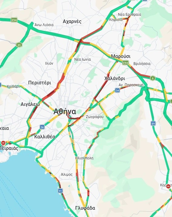 Στην Αττική Οδό, στο ρεύμα προς Ελευσίνα, παρατηρούνται καθυστερήσεις έως και 15΄από Πλακεντίας έως Κηφισίας, και 5΄-10΄στην έξοδο για Λαμία.