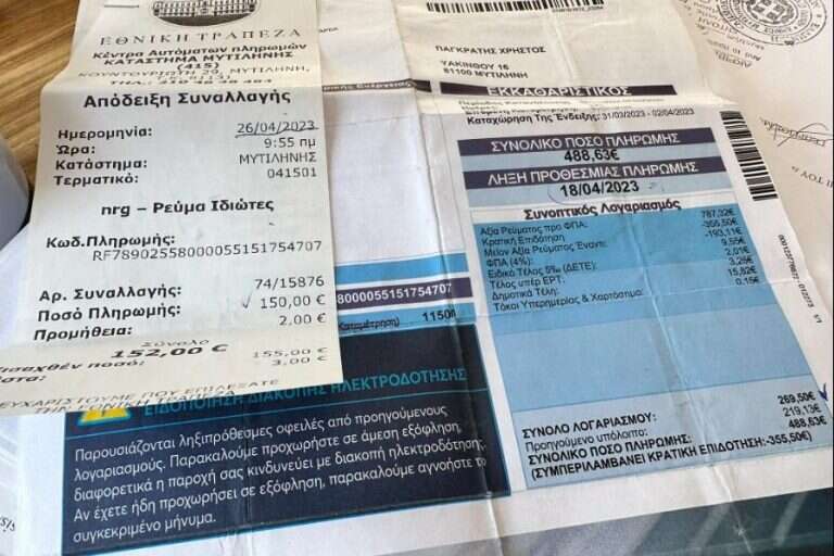 Στη συνέχεια πλήρωσε έναντι του χρέους που ήταν 488 ευρώ, το ποσό των 150 ευρώ. Τις επόμενες εβδομάδες ωστόσο προστέθηκε στο λογαριασμό και η νέα οφειλή και έτσι ο λογαριασμός κατέληξε να είναι 434 ευρώ.