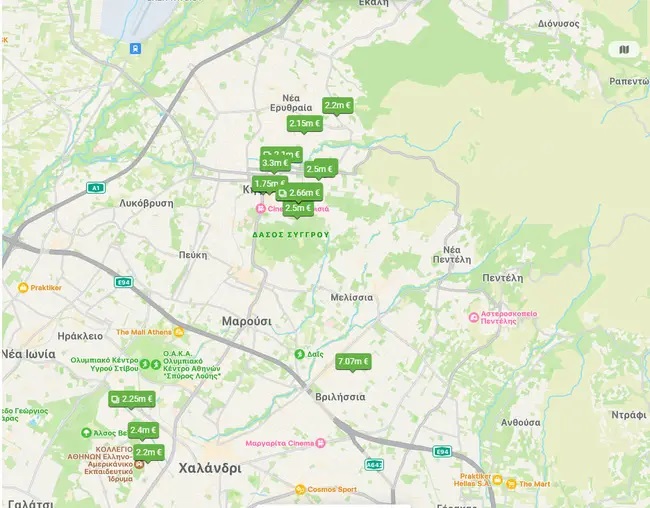 Σε περιοχές τόσο των βόρειων προαστίων όσο και της νότιας παραλιακής ζώνης, τα καινούργια ακίνητα ξεπερνούν συχνά τις 10.000 ευρώ ανά τετραγωνικό μέτρο.