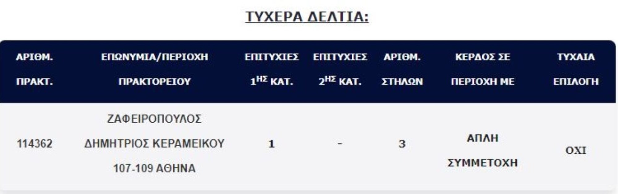 Στη δεύτερη κατηγορία δεν προέκυψε κάποιος νικητής, ενώ 40 τυχεροί κέρδισαν από 2.500 ευρώ στην τρίτη κατηγορία.