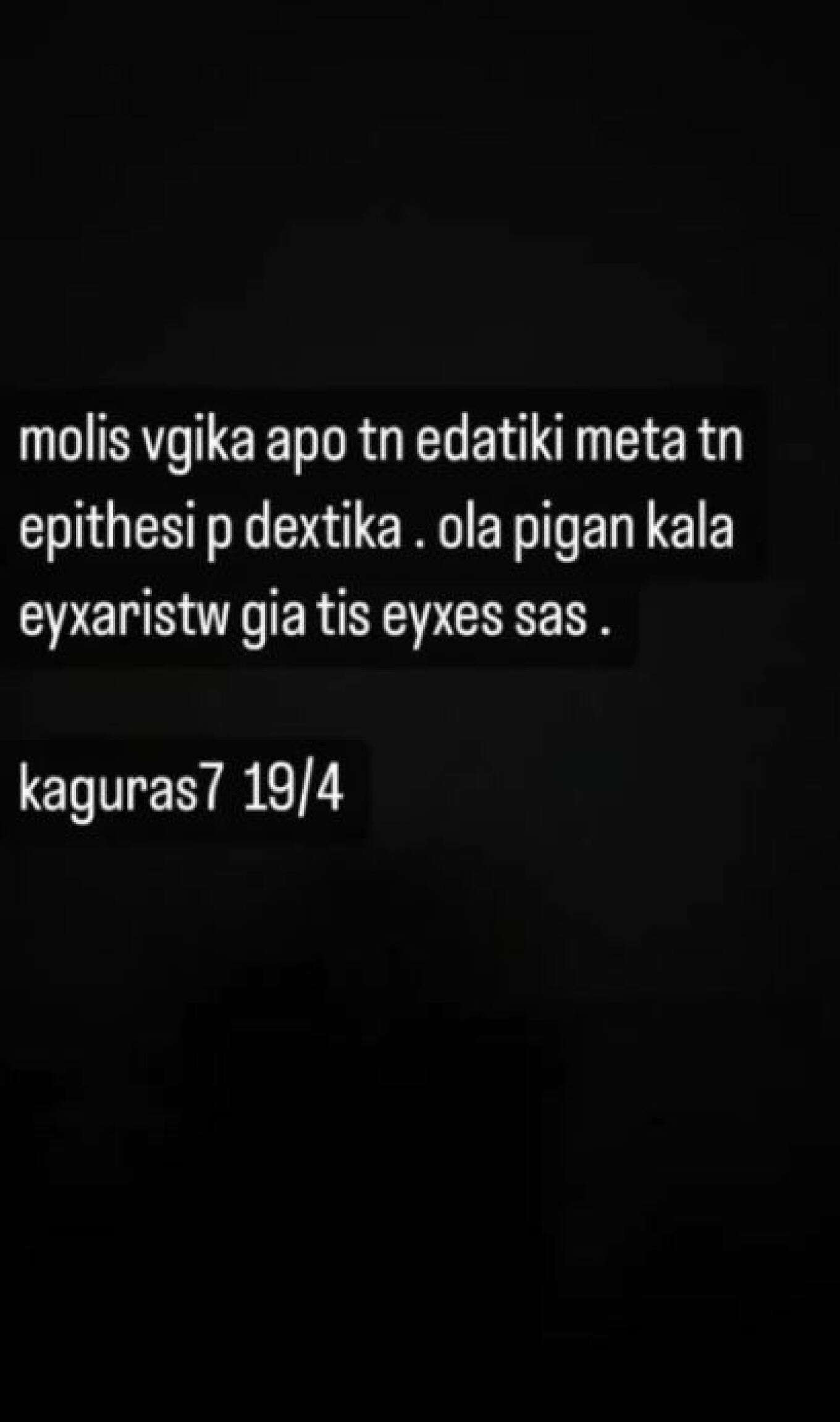Εν συνεχεία, ενημερώνει τους ακολούθους του πως είναι καλά.