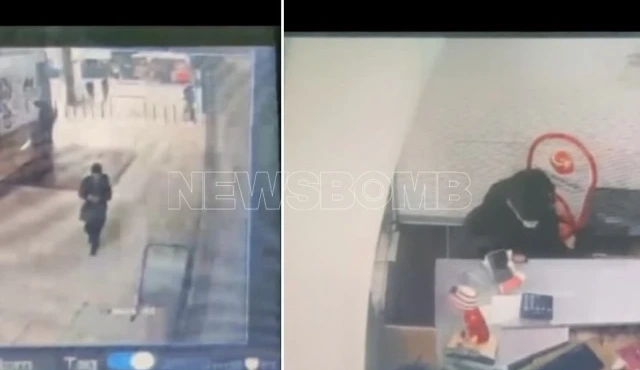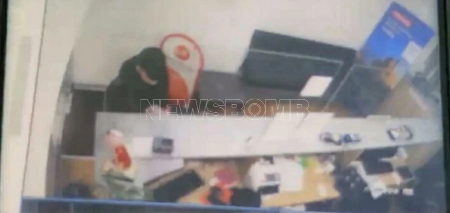 Στο εσωτερικό του καταστήματος φαίνεται να συνομιλεί με τον υπεύθυνο για την έκδοση εισιτηρίου, να ακουμπά το κινητό της στον πάγκο, να πληρώνει και να αποχωρεί χωρίς να συνοδεύεται από άλλο άτομο.
