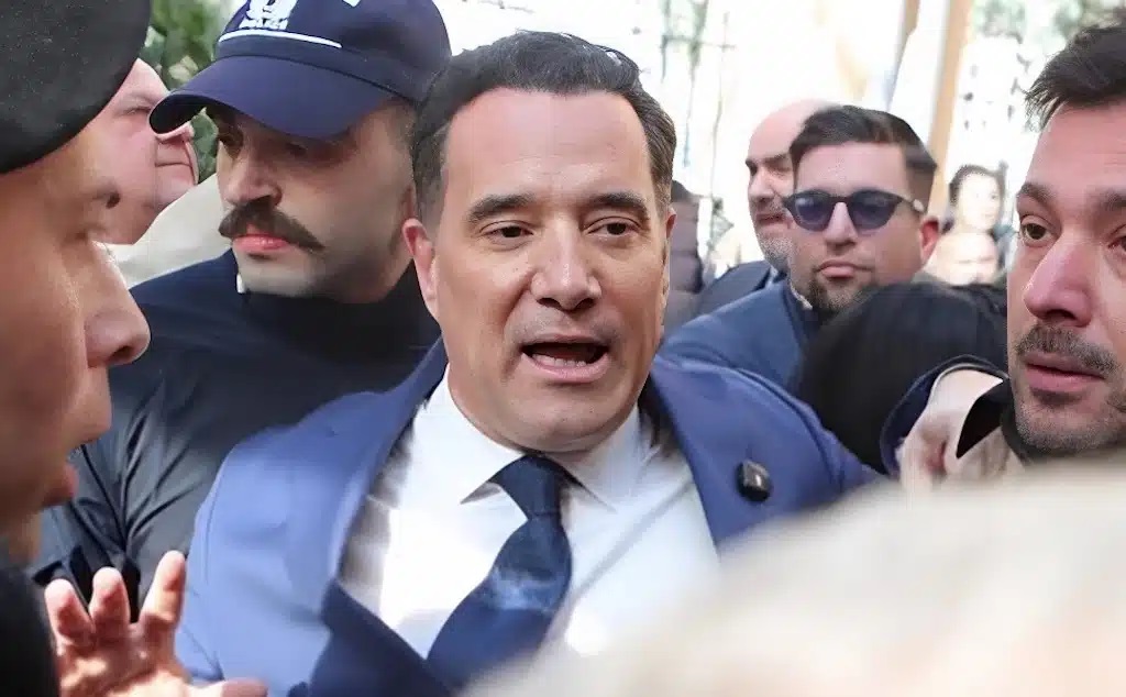 Οι θέσεις των δύο αντρών: Ο Άδωνις Γεωργιάδης βρίσκεται αριστερά στο πλάνο. Ο Δημήτρης Ζιαζιάς βρίσκεται δεξιότερα και πίσω. Μεταξύ τους παρεμβάλλονται καθόλη τη διάρκεια της έντασης τουλάχιστον τρεις άνδρες, δύο που βρίσκονται μπροστά από τον υπουργό και ένας συγκεντρωμένος μπροστά από τον κύριο Ζιαζιά. Η γροθιά του κ. Ζιαζιά: Στο 0:07, ο κ. Ζιαζιάς προσπαθεί με το σώμα του να σπρώξει τον μπροστινό του συνδιαδηλωτή και να έρθει πιο μπροστά, χωρίς αποτέλεσμα. Στην κίνηση αυτή το δεξί του χέρι που είναι από πριν ανασηκωμένο στο σχήμα της γροθιάς φαίνεται προς στιγμήν να κατεβαίνει, χωρίς να πραγματοποιεί επαφή με κανέναν από τους ανθρώπους που παρεμβάλλονται, πλην του αγκώνα με τον οποίο συνεχίζει να προσπαθεί να σπρώχνει. Σε μεταγενέστερο πλάνο ο υπουργός Υγείας φαίνεται ότι έχει απομακρυνθεί ακόμη πιο αριστερά και μακριά από το σημείο όπου είναι τοποθετημένος ο κ. Ζιαζιάς.