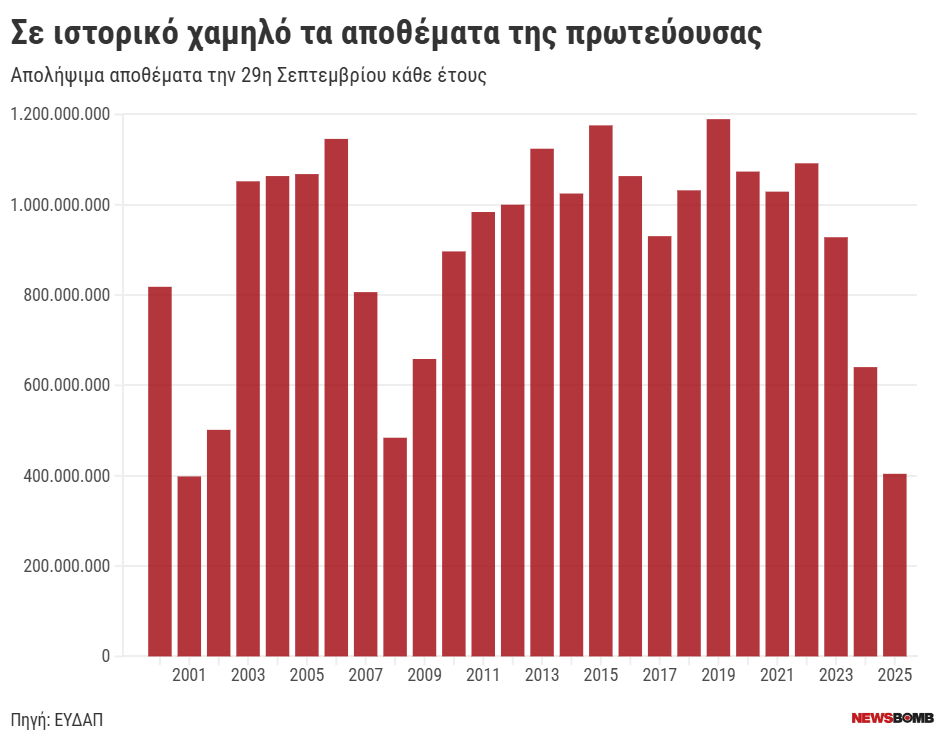 Η σοβαρότητα της κατάστασης γίνεται αντιληπτή βάσει των δεδομένων από την αρχή του αιώνα. Σύμφωνα με τα δεδομένα της ΕΥΔΑΠ, η τελευταία φορά που είχαμε ανάλογα χαμηλά αποθέματα ήταν πριν από 24 χρόνια, το 2001.