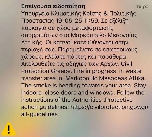Μάλιστα, η Πολιτική Προστασία προειδοποίησε για τους καπνούς, που προέρχονται από την εστία στον χώρο απορριμμάτων. Στο μήνυμα που εστάλη, οι πολίτες καλούνται να παραμείνουν σε εσωτερικούς χώρους και να έχουν κλειστά τα παράθυρα και τις πόρτες.